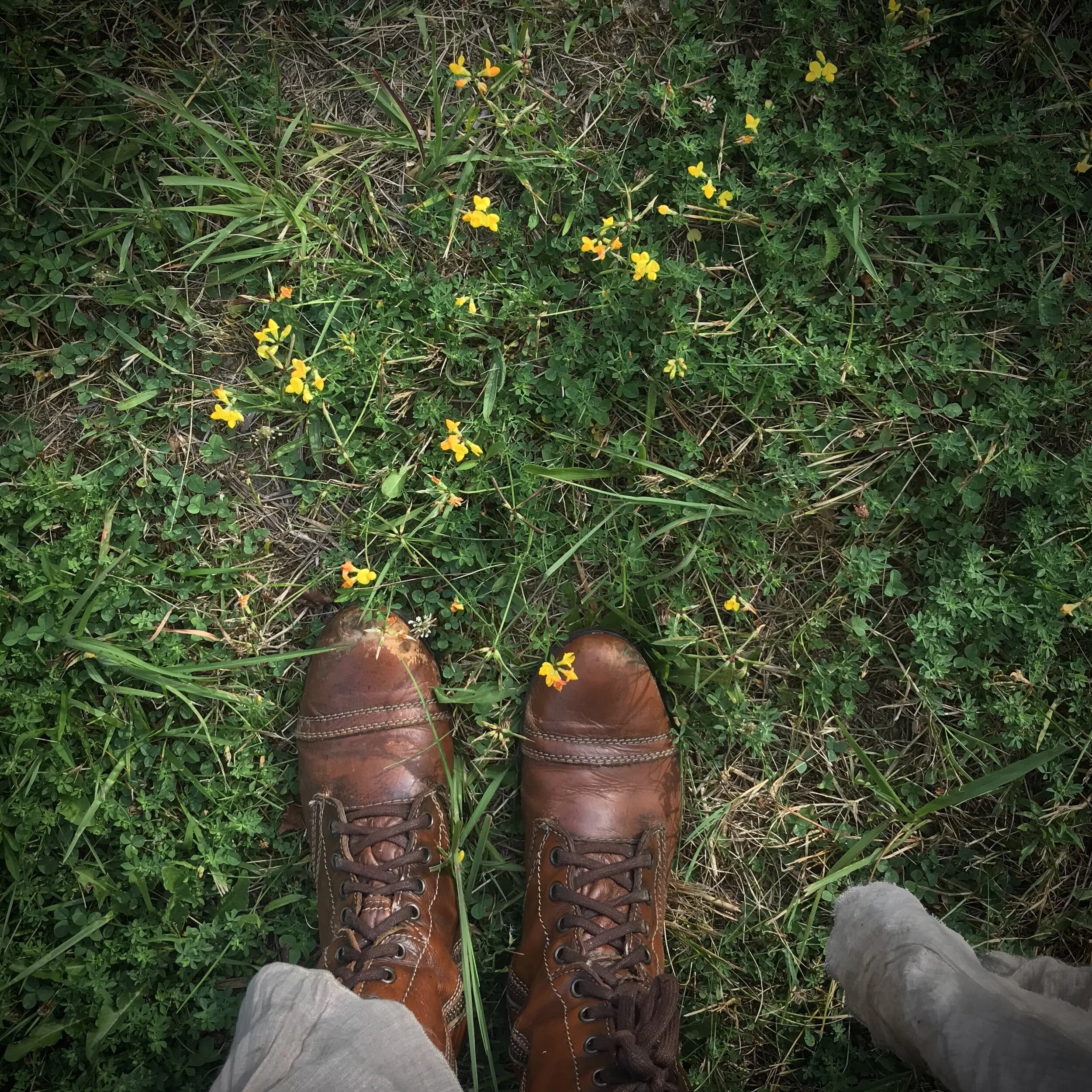 Back along the trail, I thought to myself how charming those mushrooms I had seen at the start of the path were, and then glanced down at my feet again. There I saw a grouping of what looked like old and shriveled mushrooms. When I looked closer, I realized they were puffballs. Ahh! One of my favorite mushrooms. If you’ve never had a chance to smoosh a puffball, you’re missing out. And it’s not even destructive: you’re helping the fungi to spread spores into the air when you squeeze the wee ball. I spent a few moments squishing the puffballs in delight and taking slow-motion videos of the spores lifting up into the air.