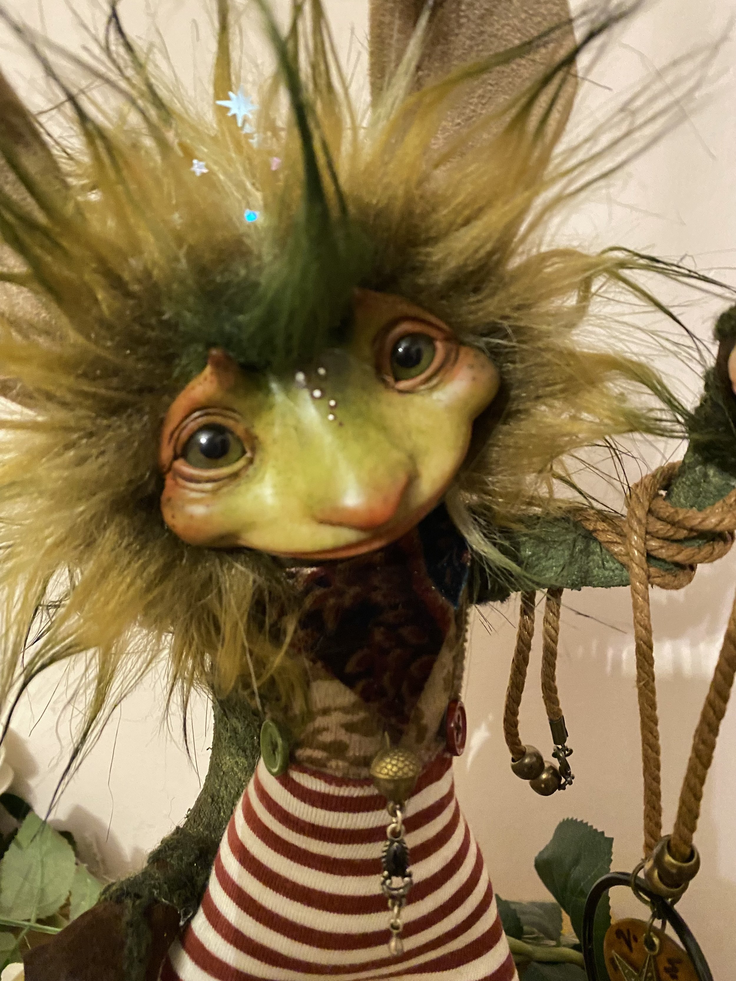 I’m so very excited to say that Saoirse and Mierla were not the only new fey beings who joined my household as a result of my March trip to England. I’d like to introduce you to Moyque (“moy-kyew”), a Fayble by Armorel Hamilton. He’s a perfect example of never knowing what gifts life will give you. I have two Faybles already, including one jackalope girl I commissioned last summer, so I was more focused going into the Glastonbury weekend on seeing what sort of beings Wendy Froud would be sharing.