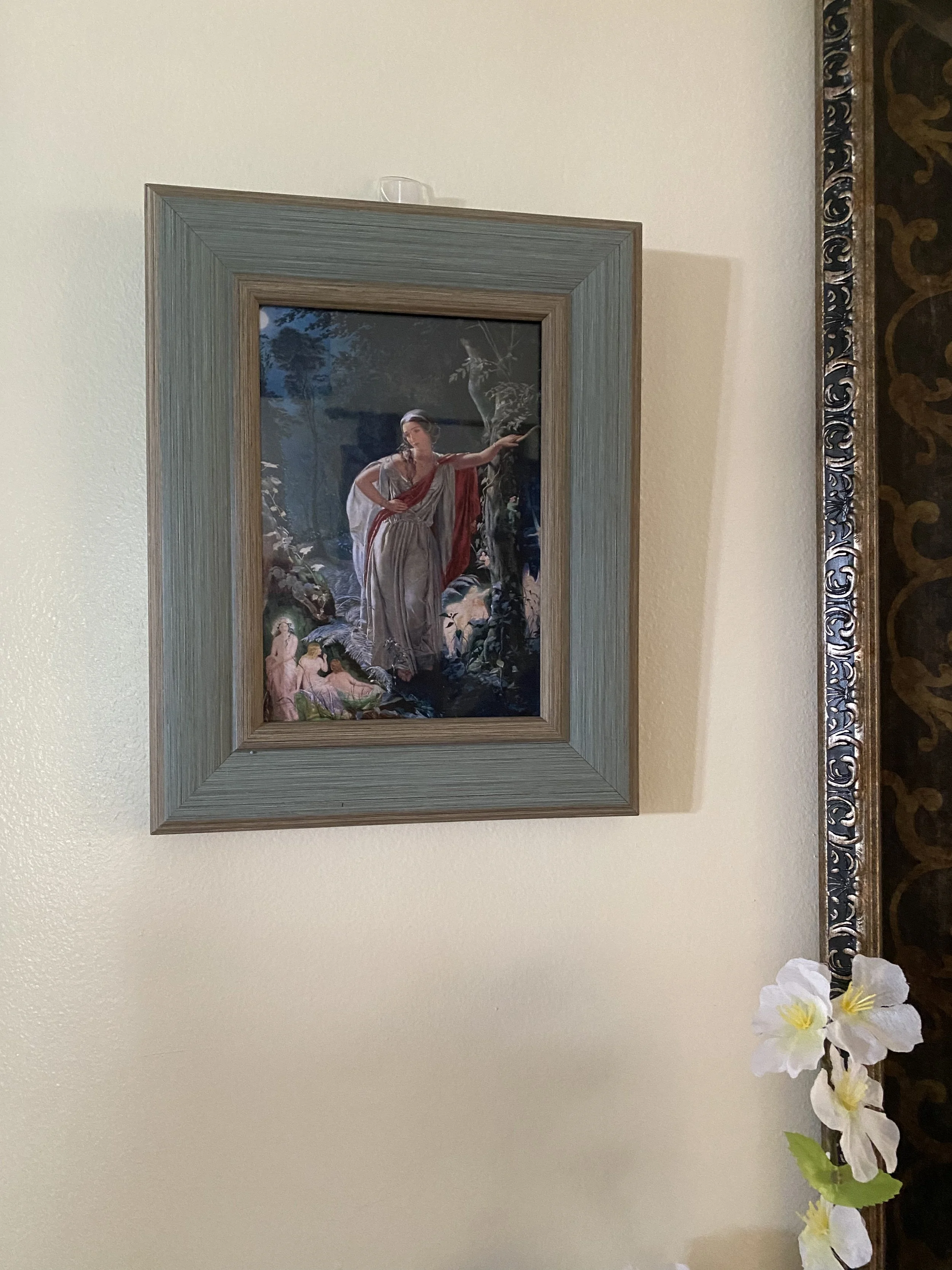 I added these Victorian artworks from the Shakespeare play to either side of the mirror, by John Simmons. Hermia and Lysander.