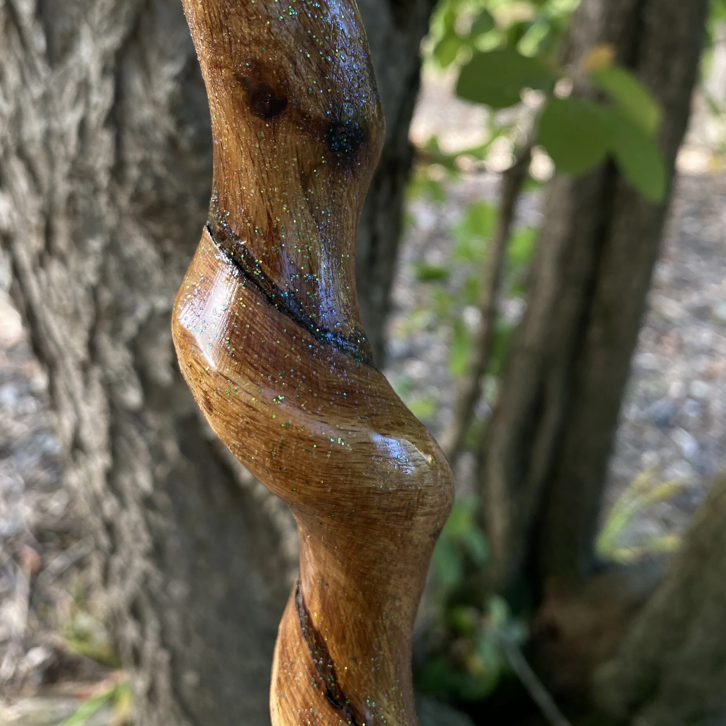 The broom handle was clear coated with shimmering fairy dust in the varnish.