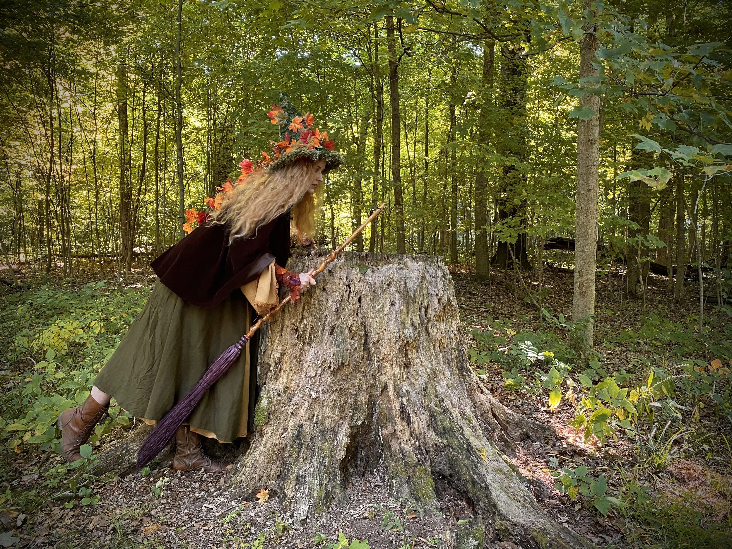 She was a witch of the woods, and that meant her cauldron was a giant hollowed tree stump. She gazed intensely into its empty basin, waiting for the whispers in the wind to tell her what potion she was supposed to brew next, and for which weary traveler who might stop by her cottage door. This day, the breeze tickled her ear and told her to sit for a moment and rest. It was a tiring process, making magic for others, and sometimes she just needed to stop and look around her at the changing autumn leaves.